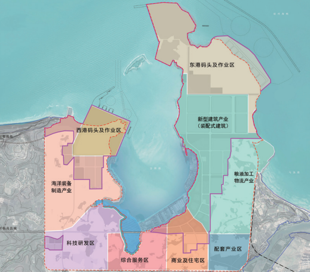 Jinpai Port Development Zone develops overall industrial planning according to the development patten of "one park, two ports, three industries, and four zones". One park is the industrial park, two ports are east and west ports, three industries refer to the three leading industries, and four zones mean the four supporting functional areas, including supporting industries, commercial life, comprehensive services, and scientific and technological research and development, they will form an integrated development trend of "port -industry-city". It is dedicated to creating a green equipment industrial cluster integrating research and development, design, manufacturing, exhibition, trading, and training.